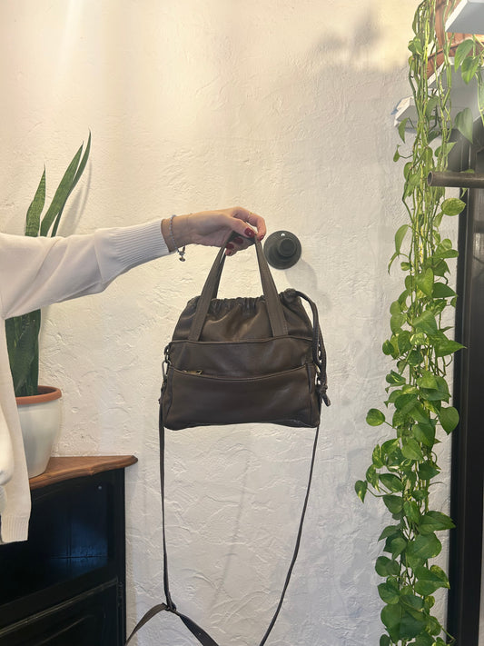 Secchiello arricciato in pelle con tracolla