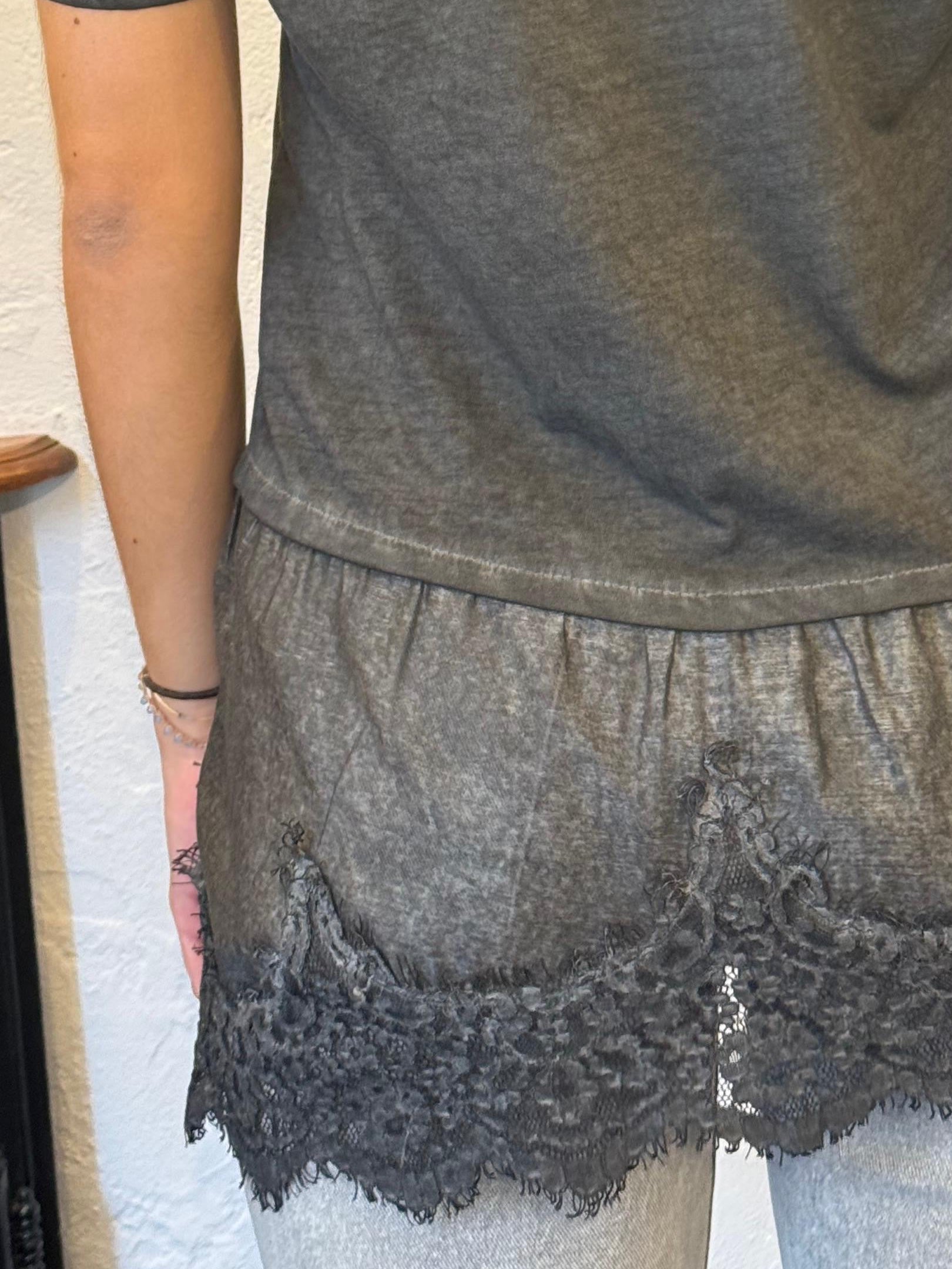 T-SHIRT GRIGIA CON ORLO IN PIZZO